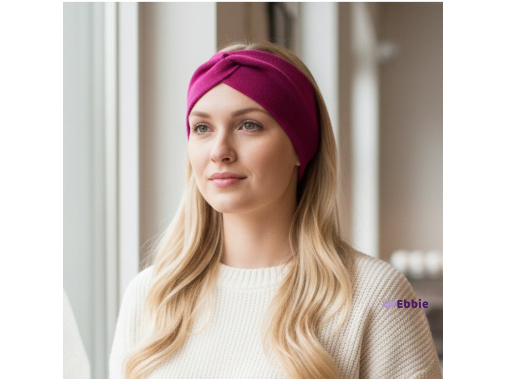 Bavlněná čelenka - MALINOVÁ - ŽEBROVANÁ