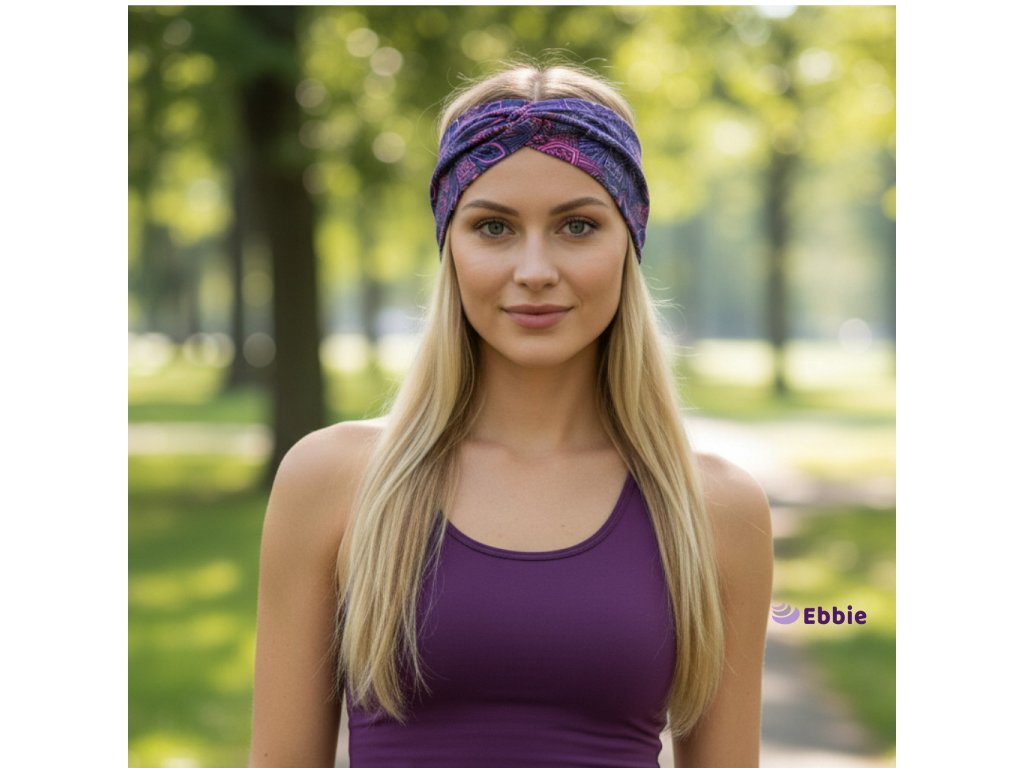 Bavlněná čelenka - MANDALA FIALOVÁ