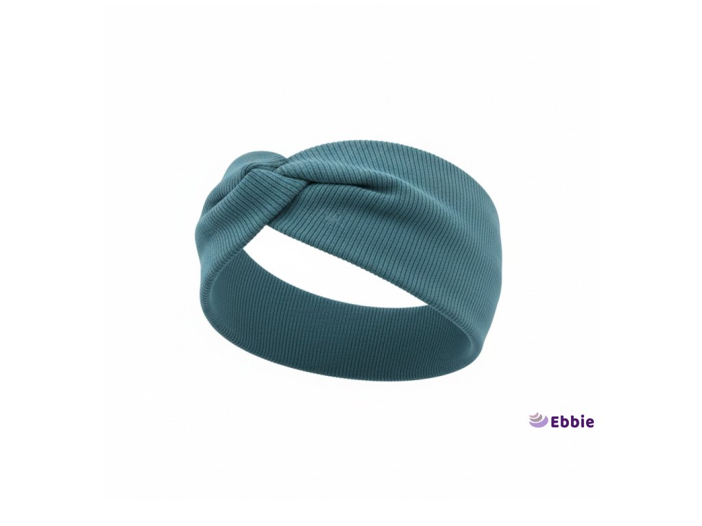 Bavlněná čelenka - PASTELOVÝ PETROL - ŽEBROVANÁ