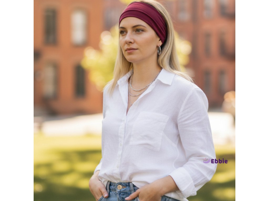 Bavlněná čelenka od Ebbie s všitou gumičkou - BORDÓ