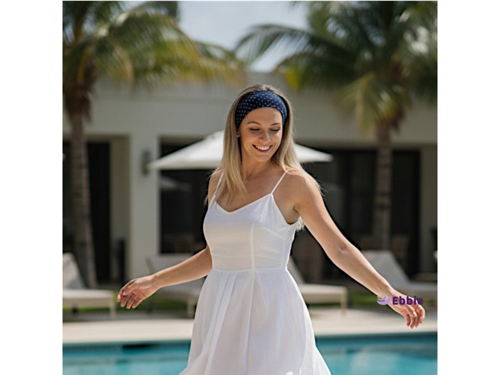 Bavlněná čelenka od Ebbie s všitou gumičkou - PUNTÍKY NA MODRÉ