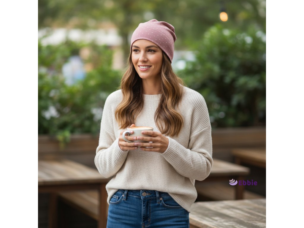 Bavlněná čepice Beanie - PUNTÍKY NA STARORŮŽOVÉ