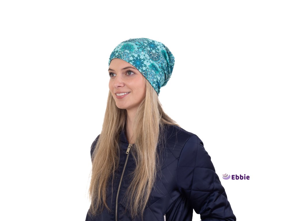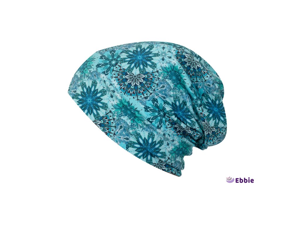 Bavlněná čepice Beanie - MANDALA TYRKYSOVÁ