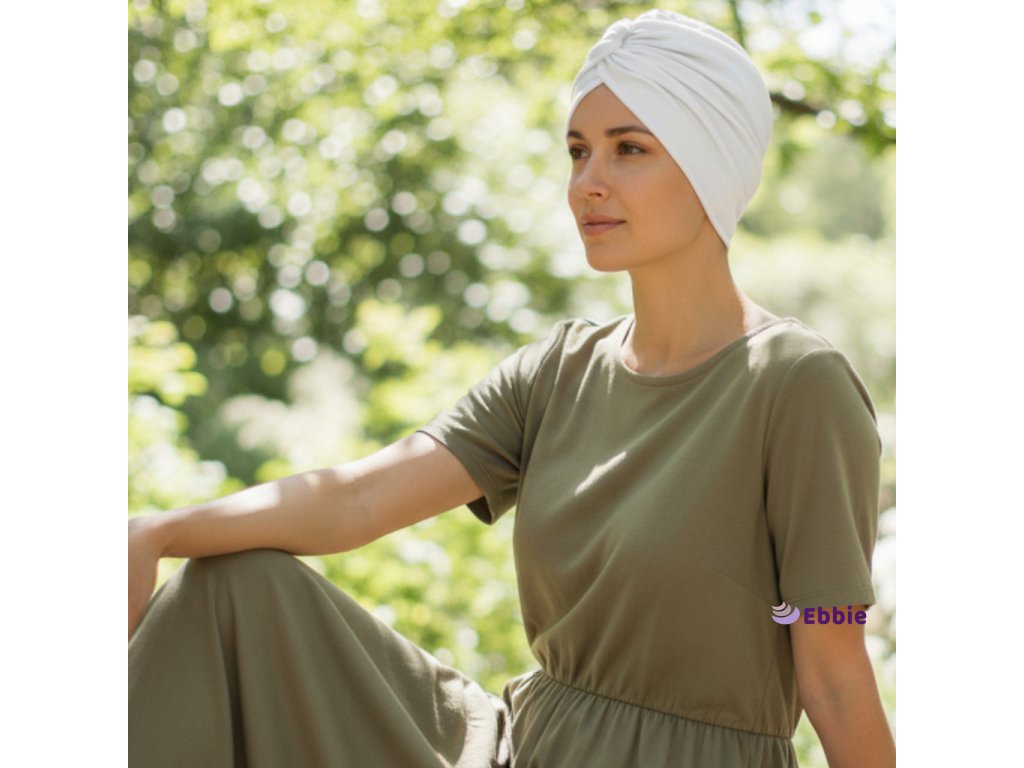 Částečně jednovrstvý turban Ebbie – ručně šitý český výrobek z hladkého úpletu.