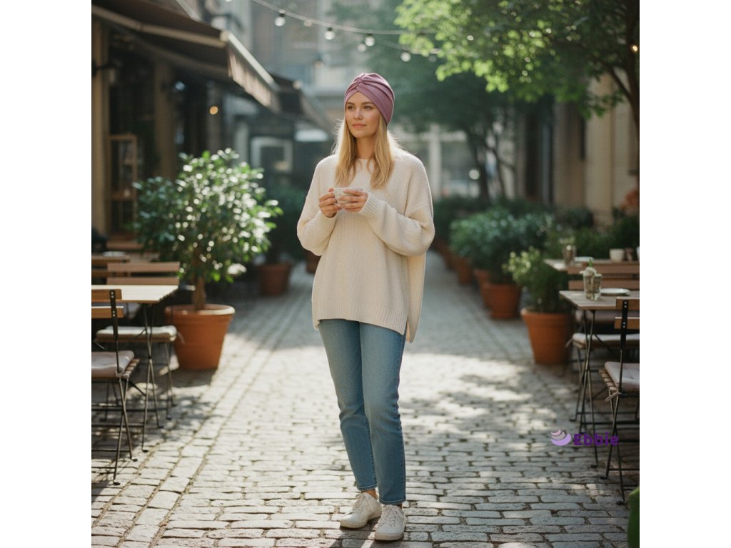 Tento lehký a prodyšný turban je ideální volbou pro ženy po chemoterapii – poskytuje jemnou ochranu citlivé pokožky hlavy a zároveň zajišťuje maximální pohodlí. Díky jemné perforaci působí elegantně a vzdušně.