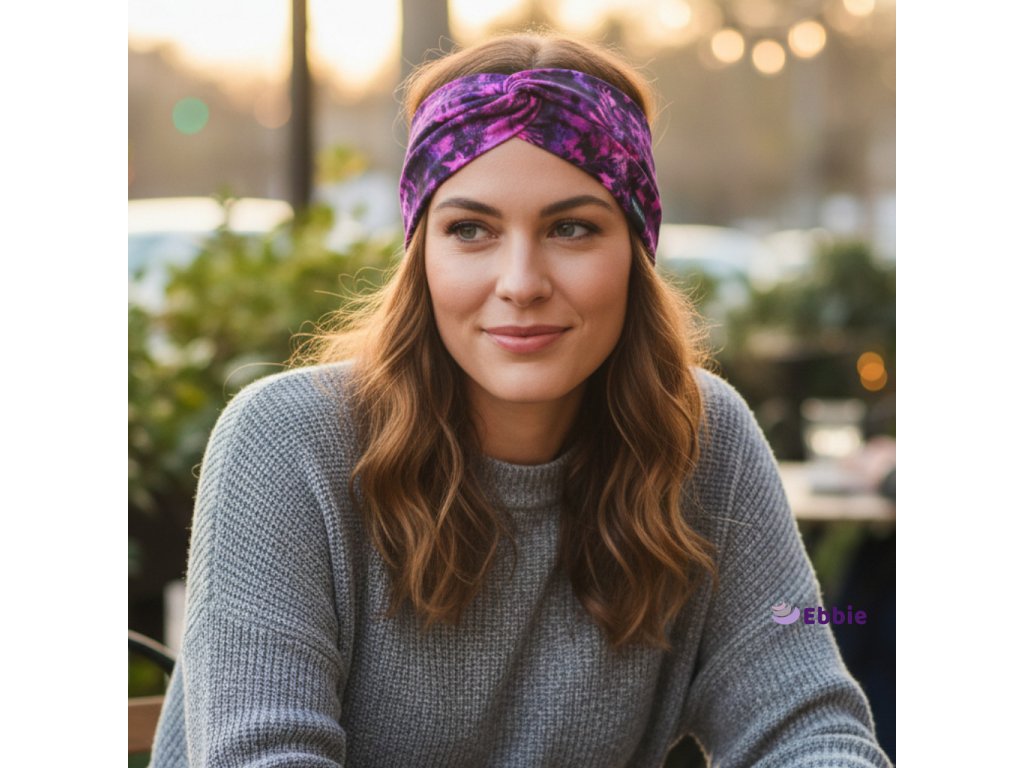 Bavlněná čelenka - FIALOVÉ LÍSTEČKY