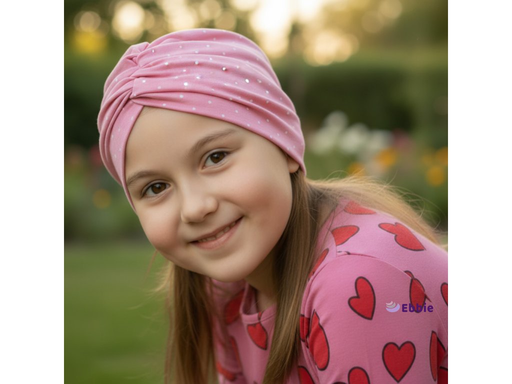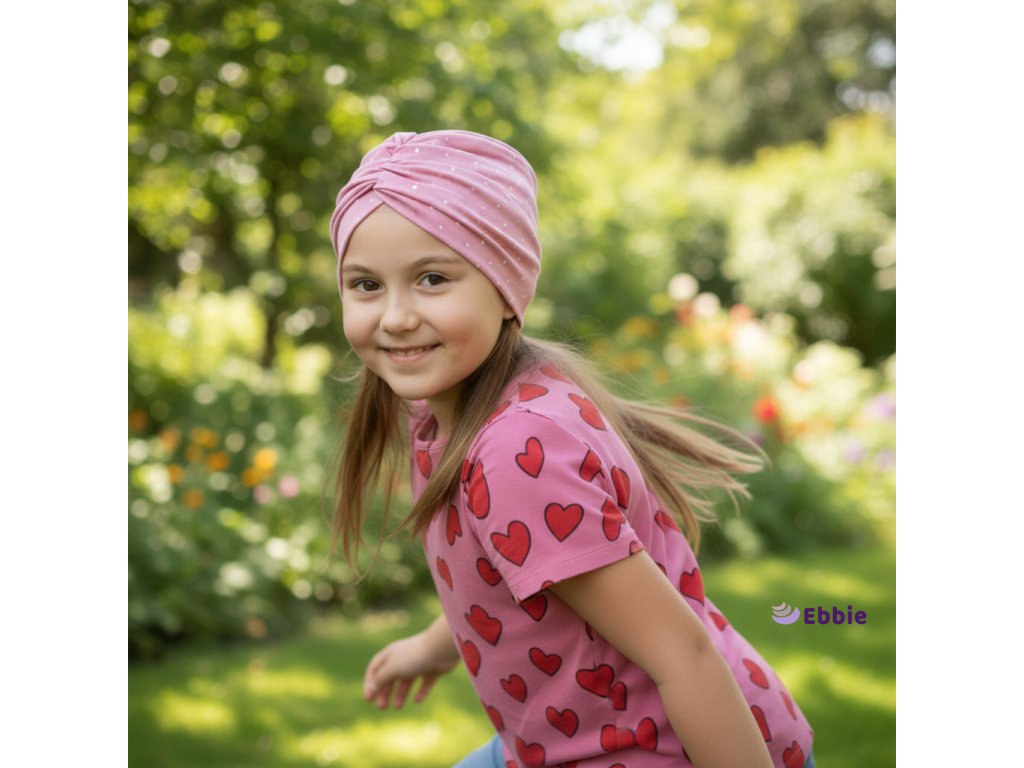 Dětský bavlněný turban-style - PUNTÍKY NA STARORŮŽOVÉ