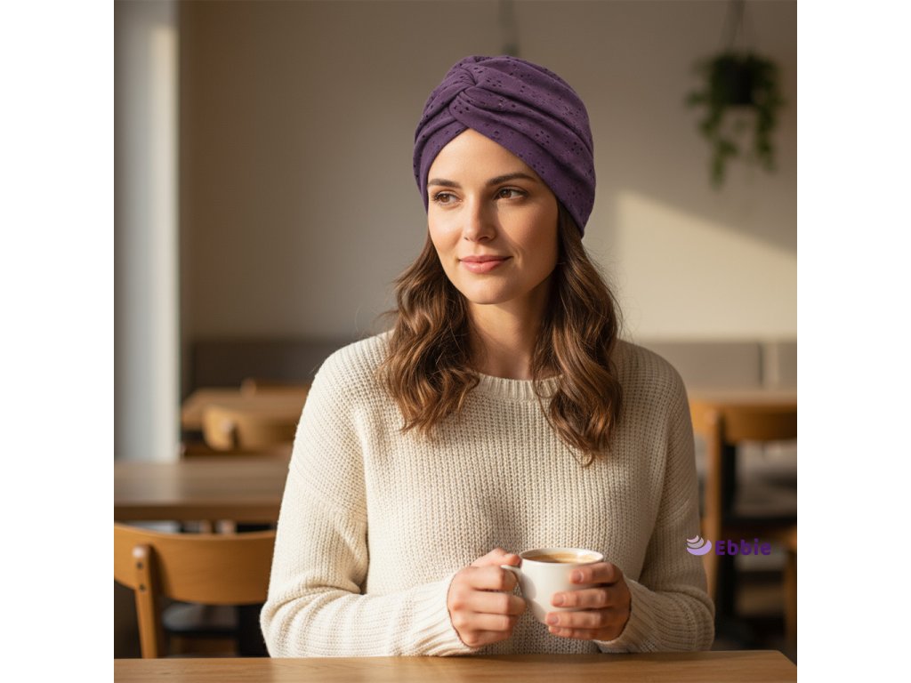 Tento lehký a prodyšný turban je ideální volbou pro ženy po chemoterapii – poskytuje jemnou ochranu citlivé pokožky hlavy a zároveň zajišťuje maximální pohodlí. Díky jemné perforaci působí elegantně a vzdušně.