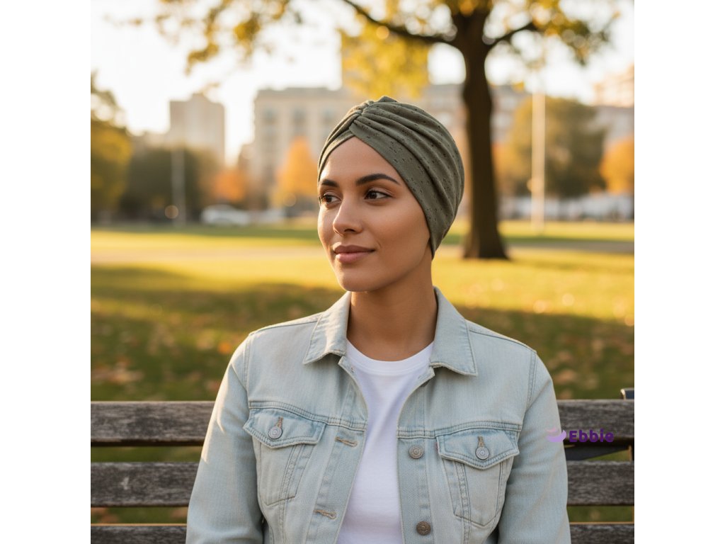 Tento lehký a prodyšný turban je ideální volbou pro ženy po chemoterapii – poskytuje jemnou ochranu citlivé pokožky hlavy a zároveň zajišťuje maximální pohodlí. Díky jemné perforaci působí elegantně a vzdušně.